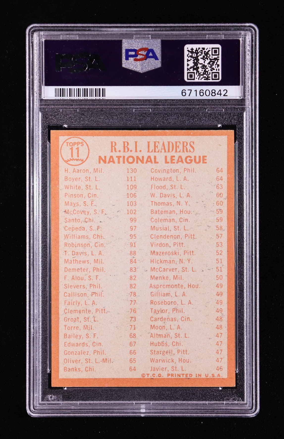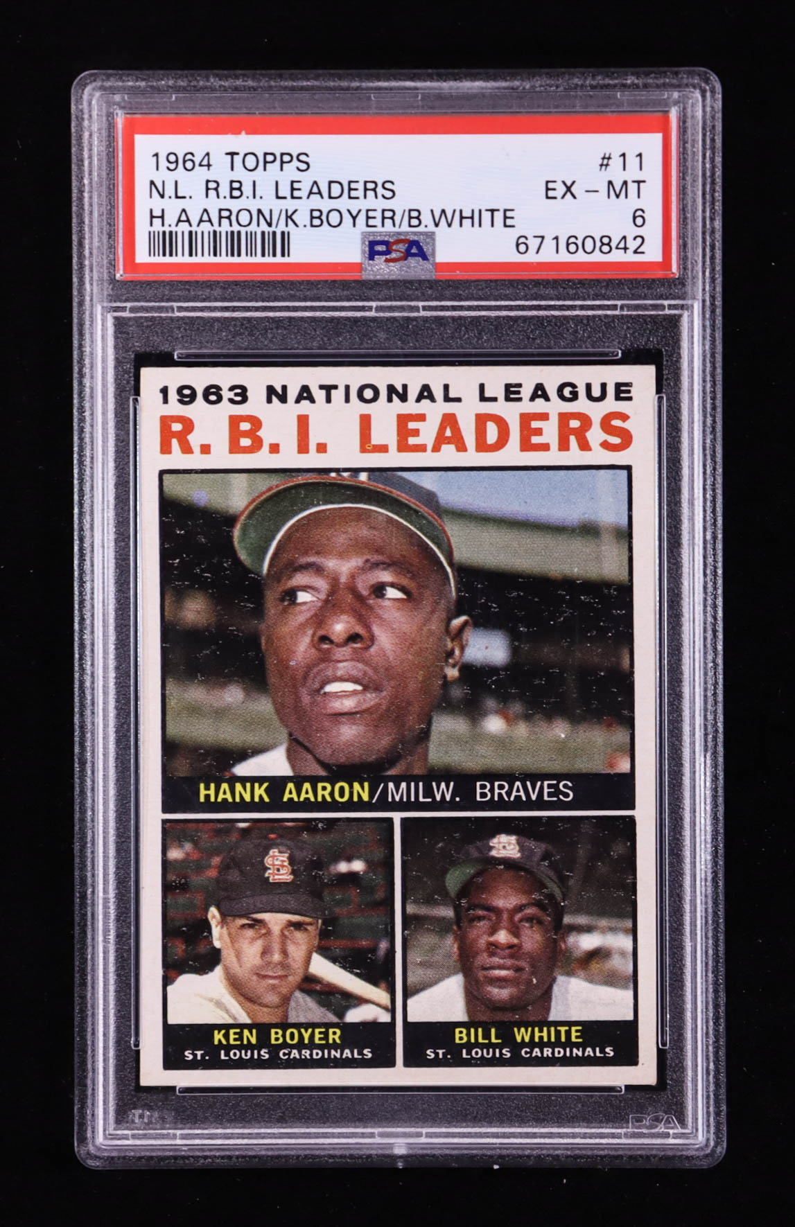Hank Aaron / Ken Boyer / Bill White 1964 Topps #11 NL RBI Leaders (PSA 6)