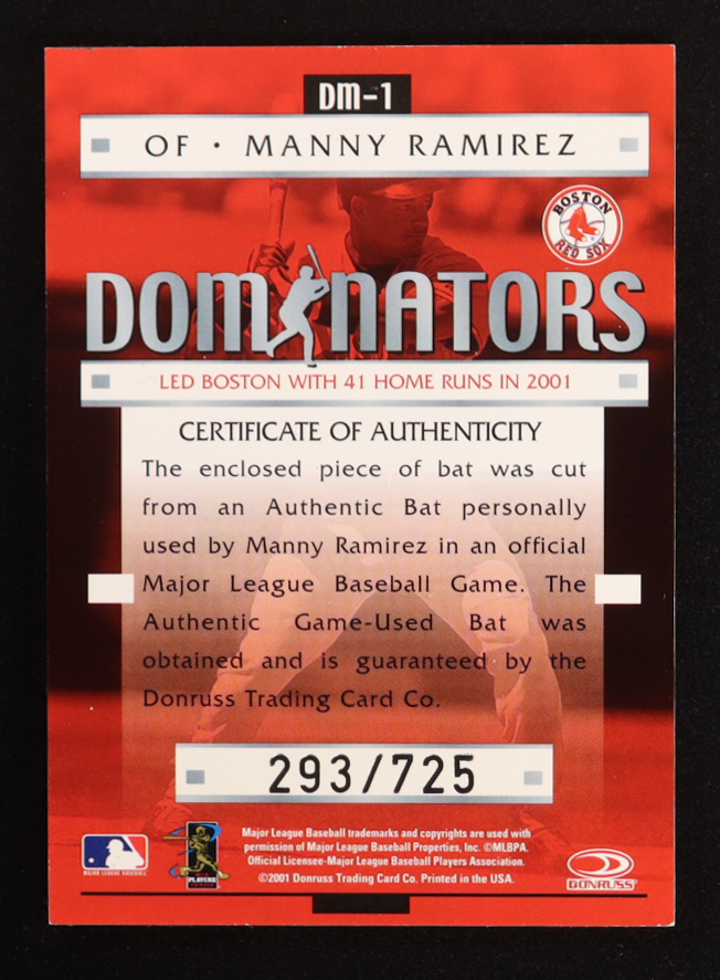 Manny Ramirez 2001 Donruss Class of 2001 Diamond Dominators Sox Bat #DM1 #293/725