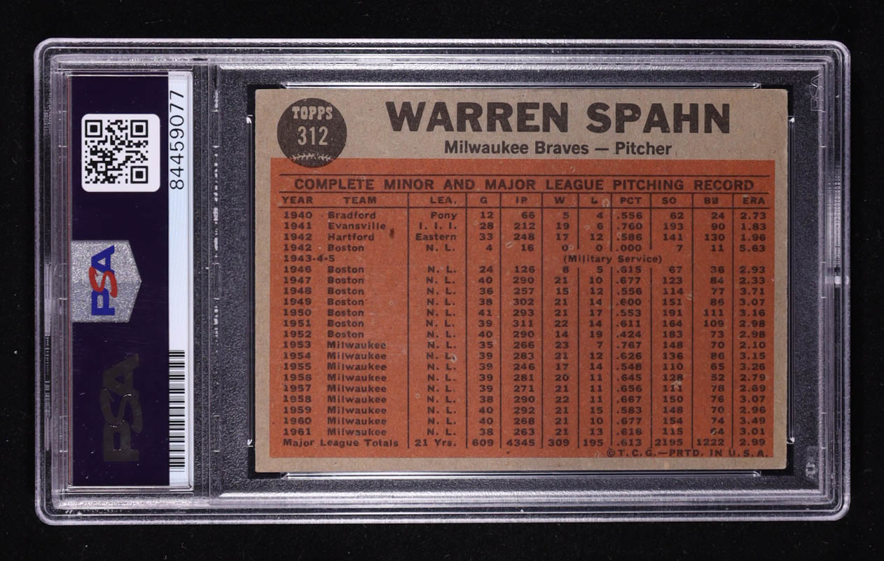 Warren Spahn Signed 1962 Topps #312 (PSA Encapsulated)