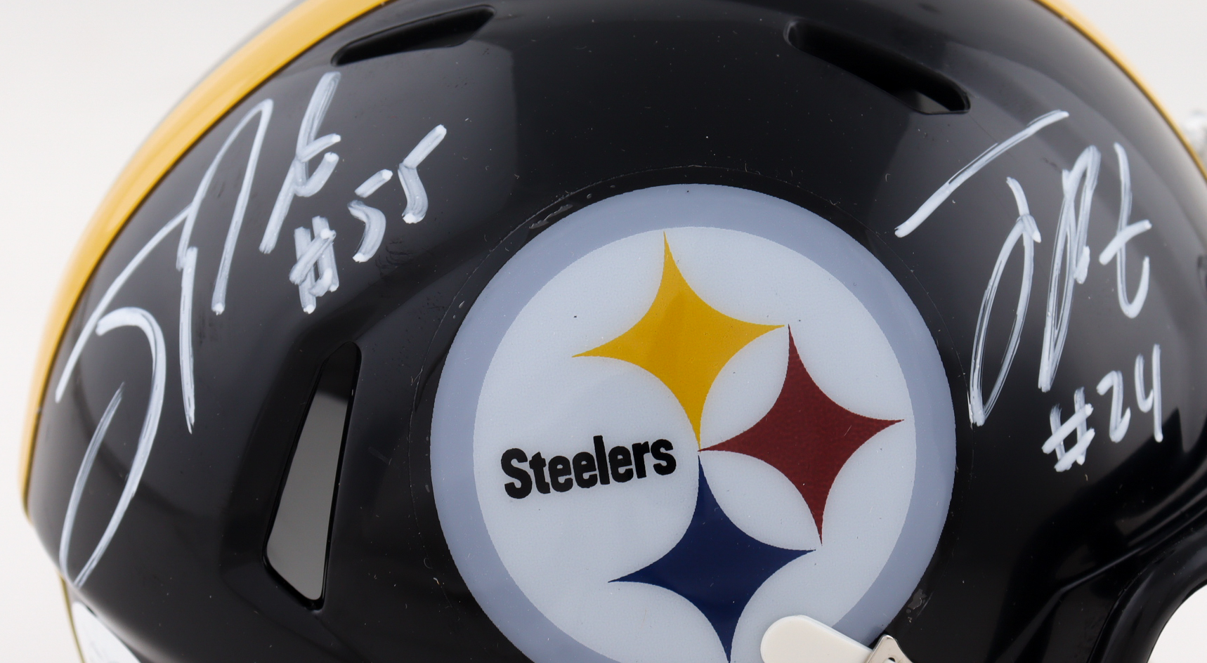 Riddell Pittsburgh Steelers Speed Mini Helmet. Hand-signed by Joey Porter Jr. and Joey Porter Sr.