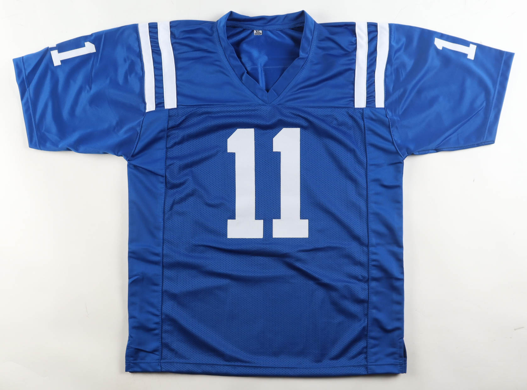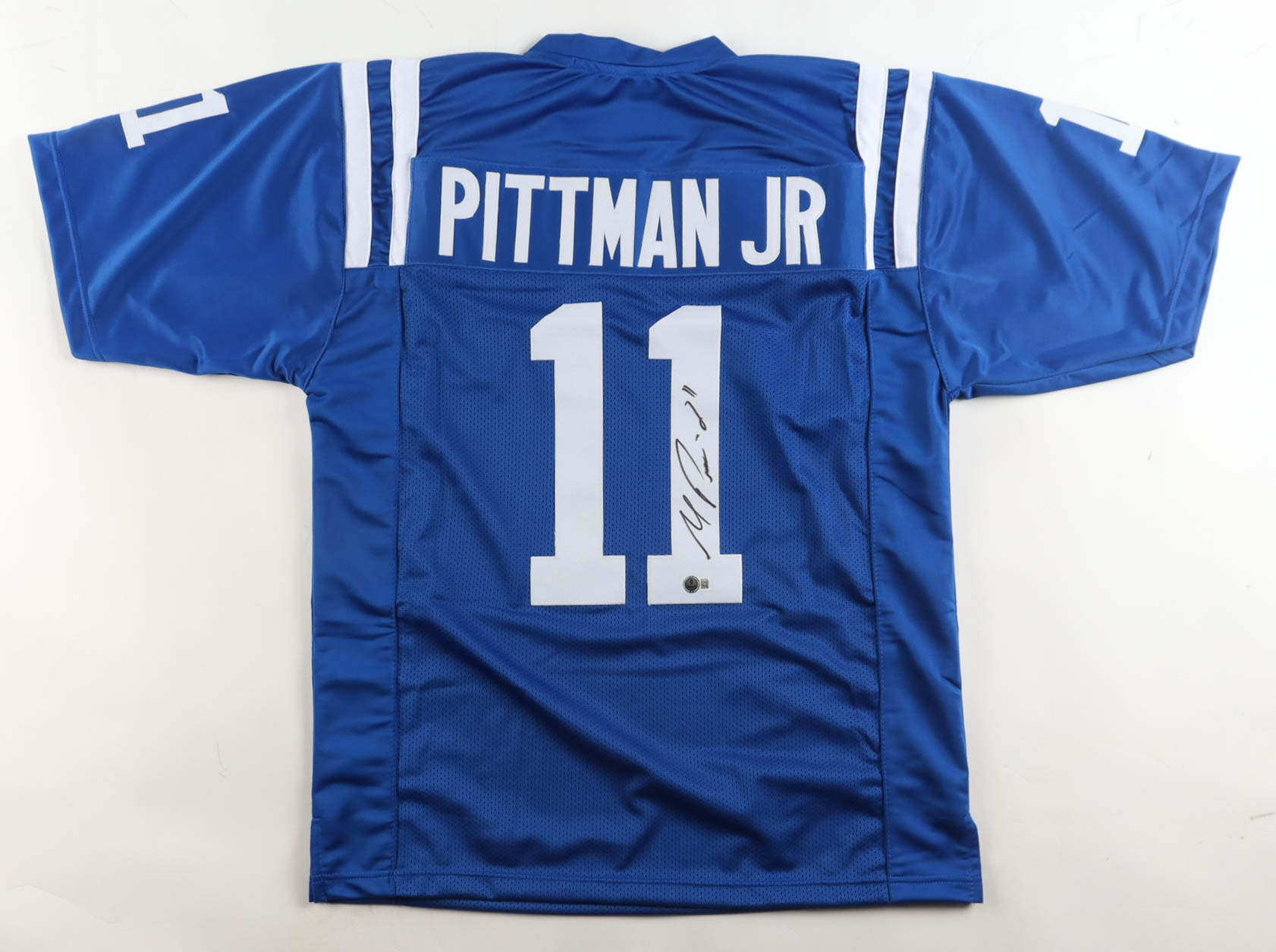 Custom jersey with everything sewn on, size XL. Hand-signed by Michael Pittman Jr..