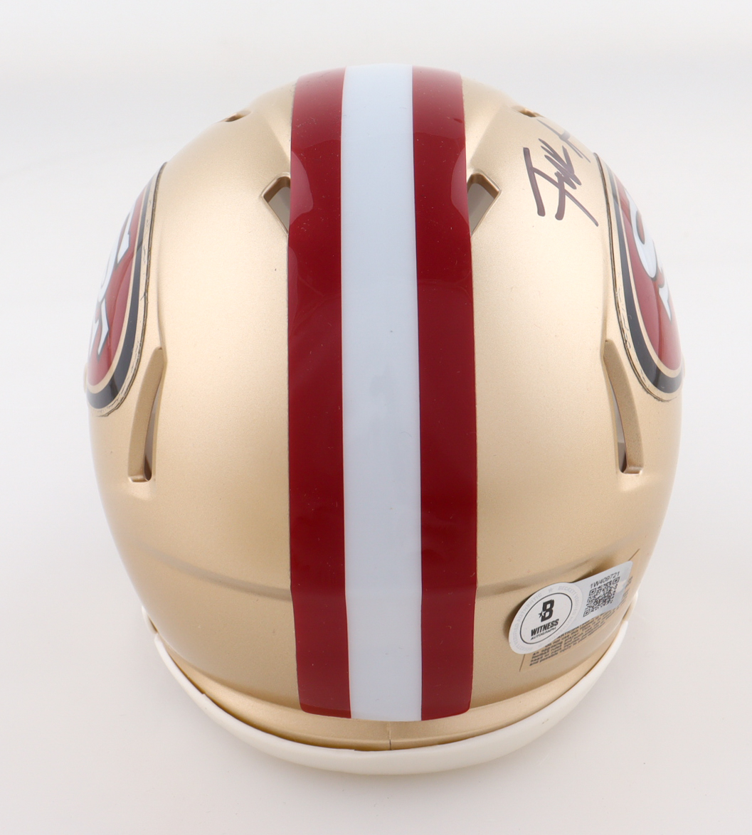 Riddell San Francisco 49ers Speed mini helmet has been hand-signed by Frank Gore.