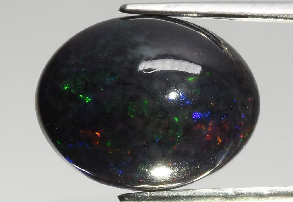One (1) Loose Oval Cabochon Cut Natural Black Opal