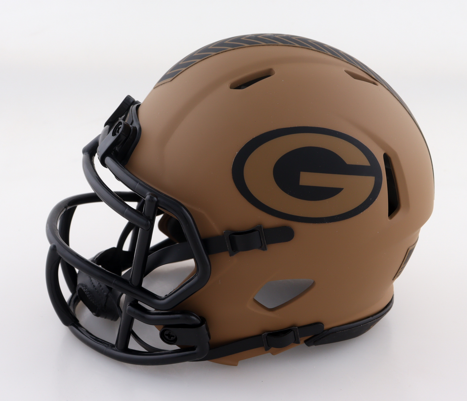 Riddell Green Bay Packers Salute to Service Alternate Speed mini helmet. Hand-signed by Davante Adams.