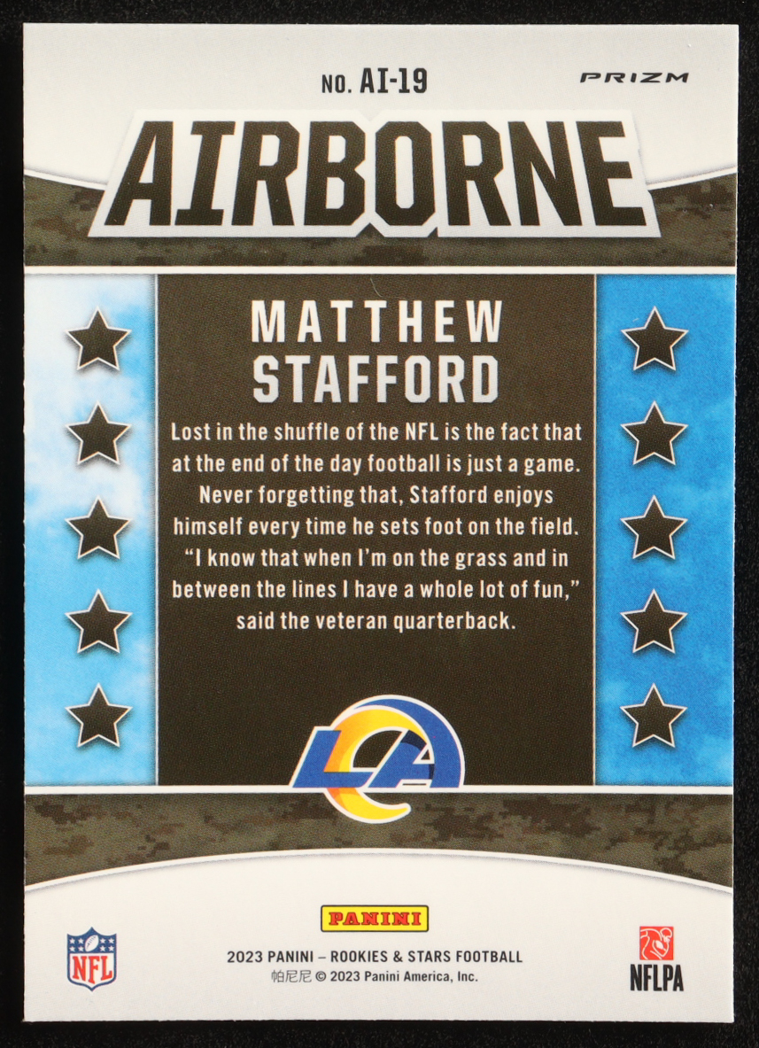 Matthew Stafford 2023 Rookies and Stars Airborne Red Plaid #19 RC