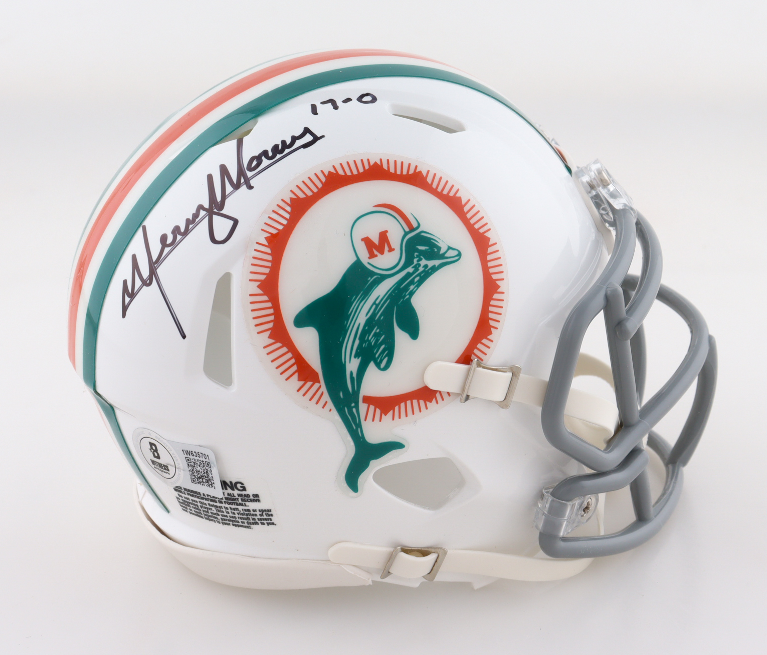 Mercury Morris Signed Dolphins Speed Mini Helmet Inscribed "17-0" (Beckett)
