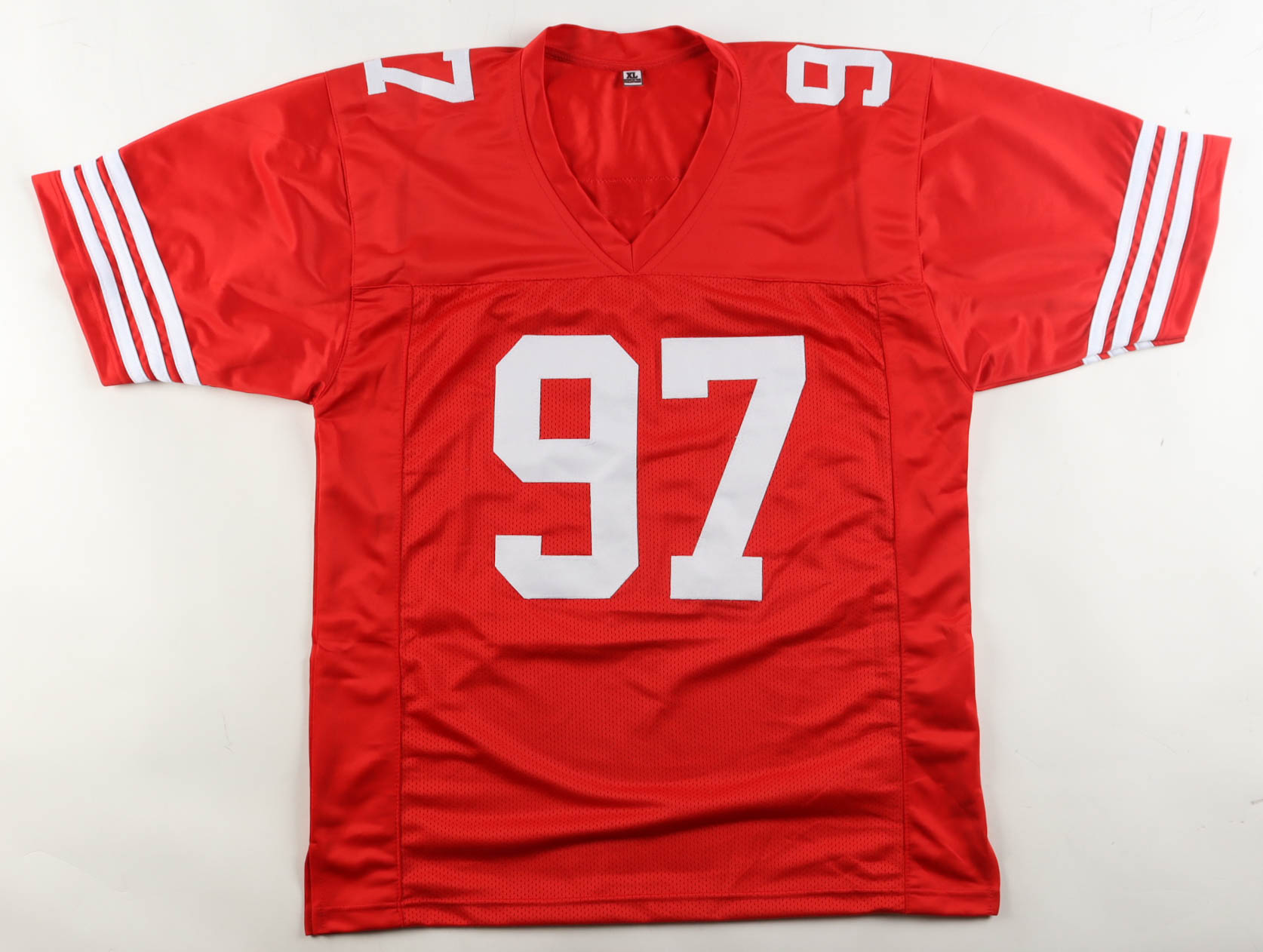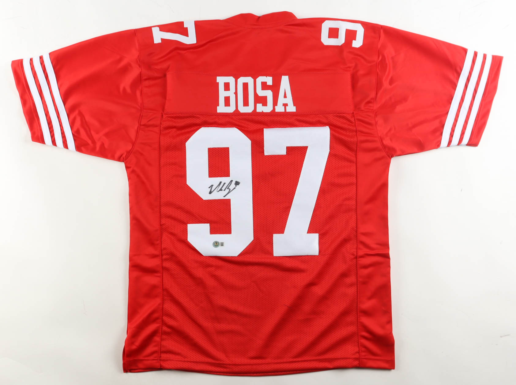 Custom jersey with everything sewn on, size XL. Hand-signed by Nick Bosa.