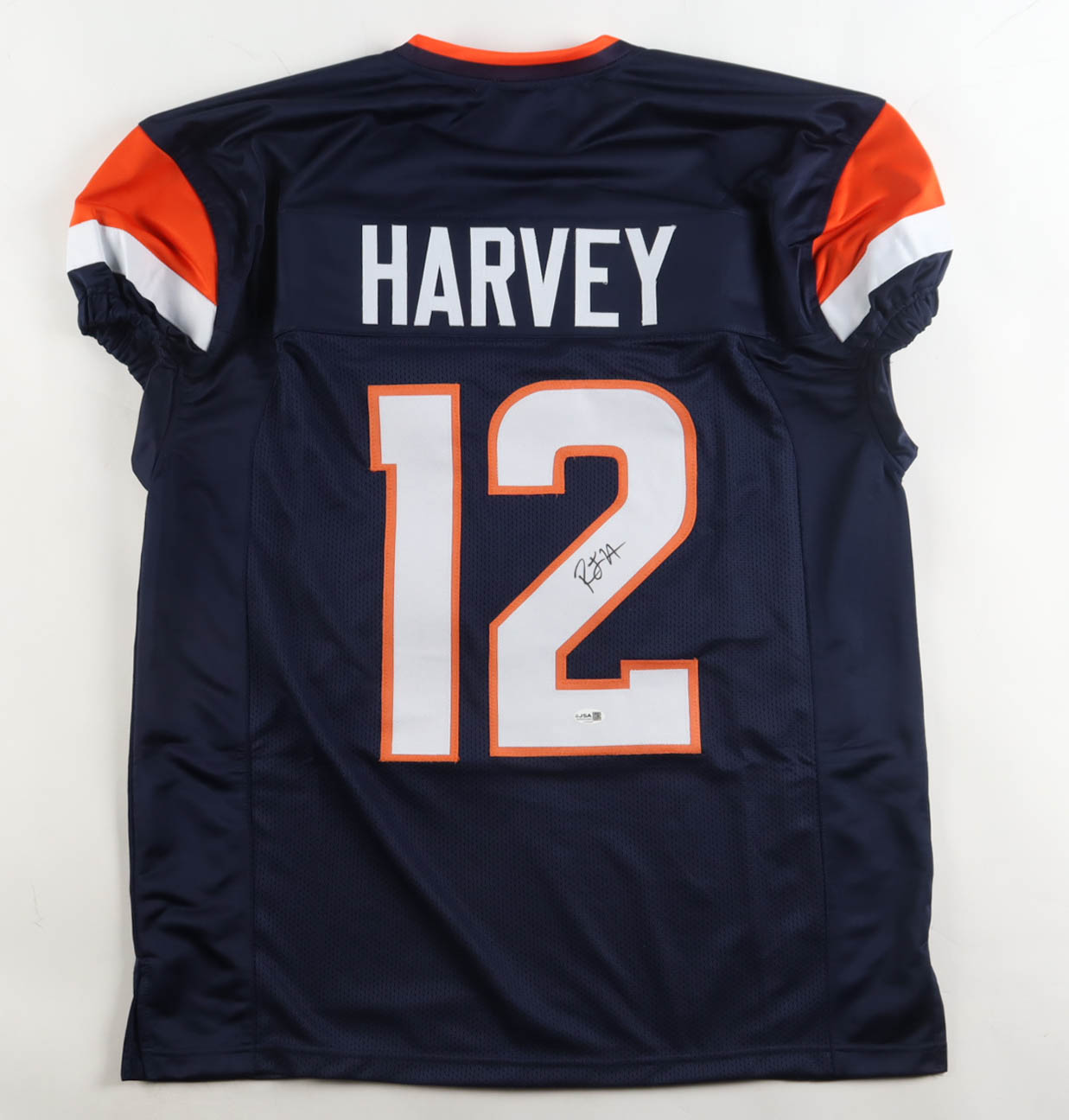 Custom jersey with everything sewn on, size XL. Hand-signed by RJ Harvey.