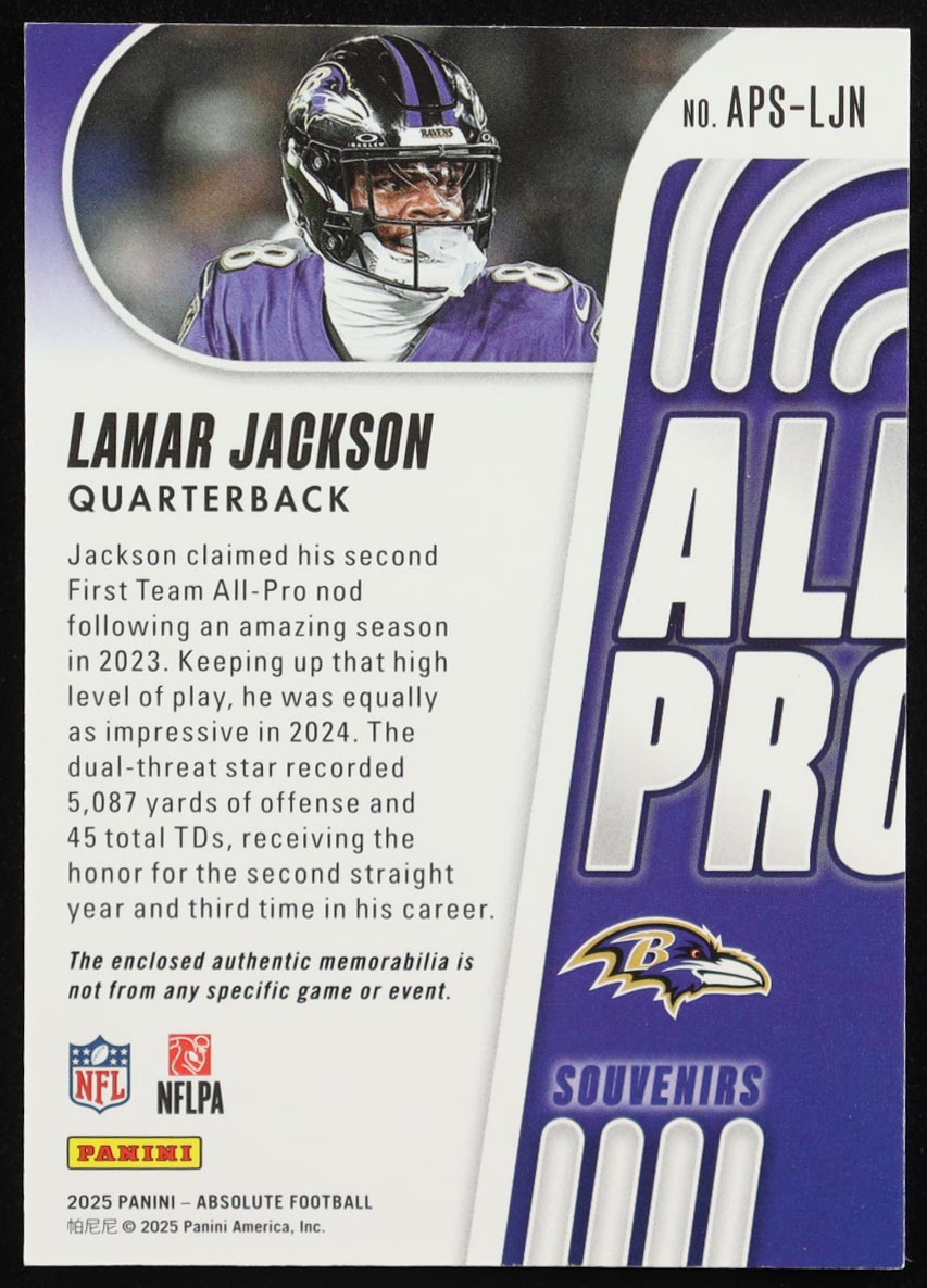 Lamar Jackson 2025 Absolute All Pro Souvenirs #1 #69/115