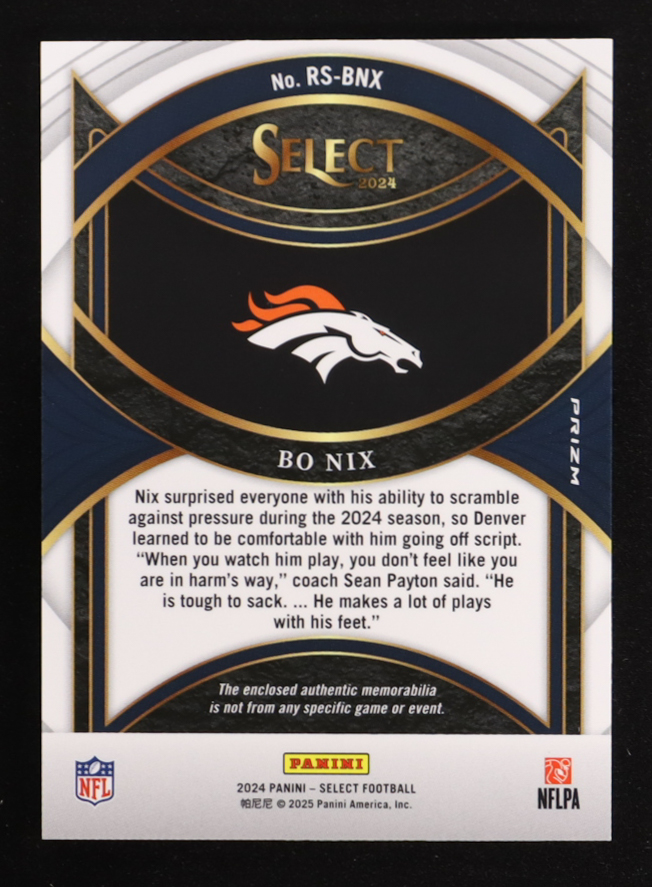 Bo Nix 2024 Select Rookie Swatches Prizm Red #19 RC