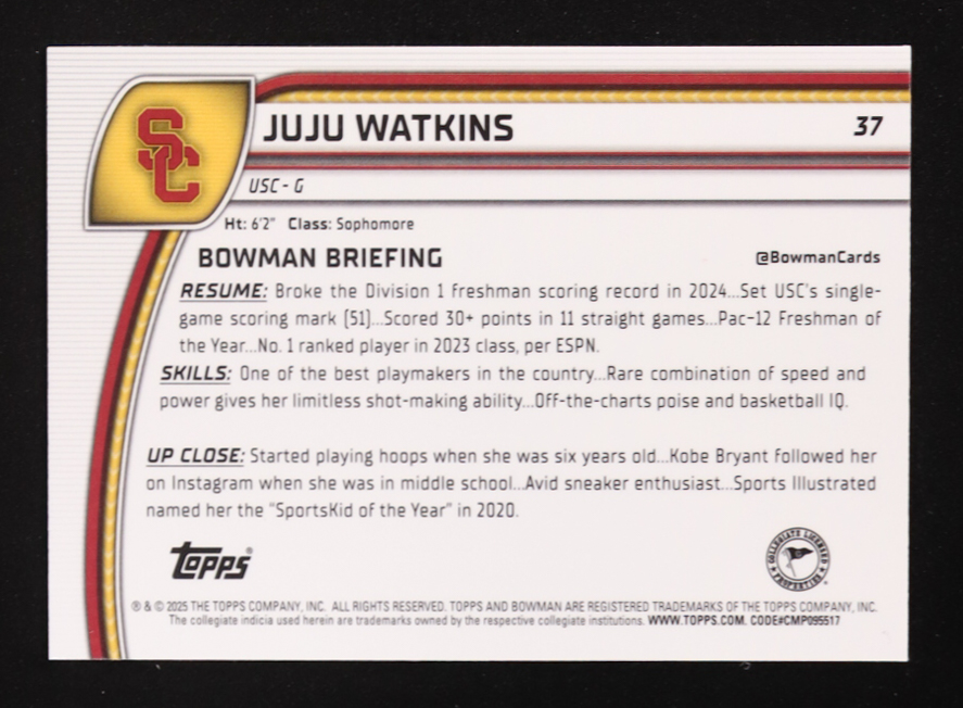 Juju Watkins 2024-25 Bowman Chrome University Sky Blue Refractors #37 RC