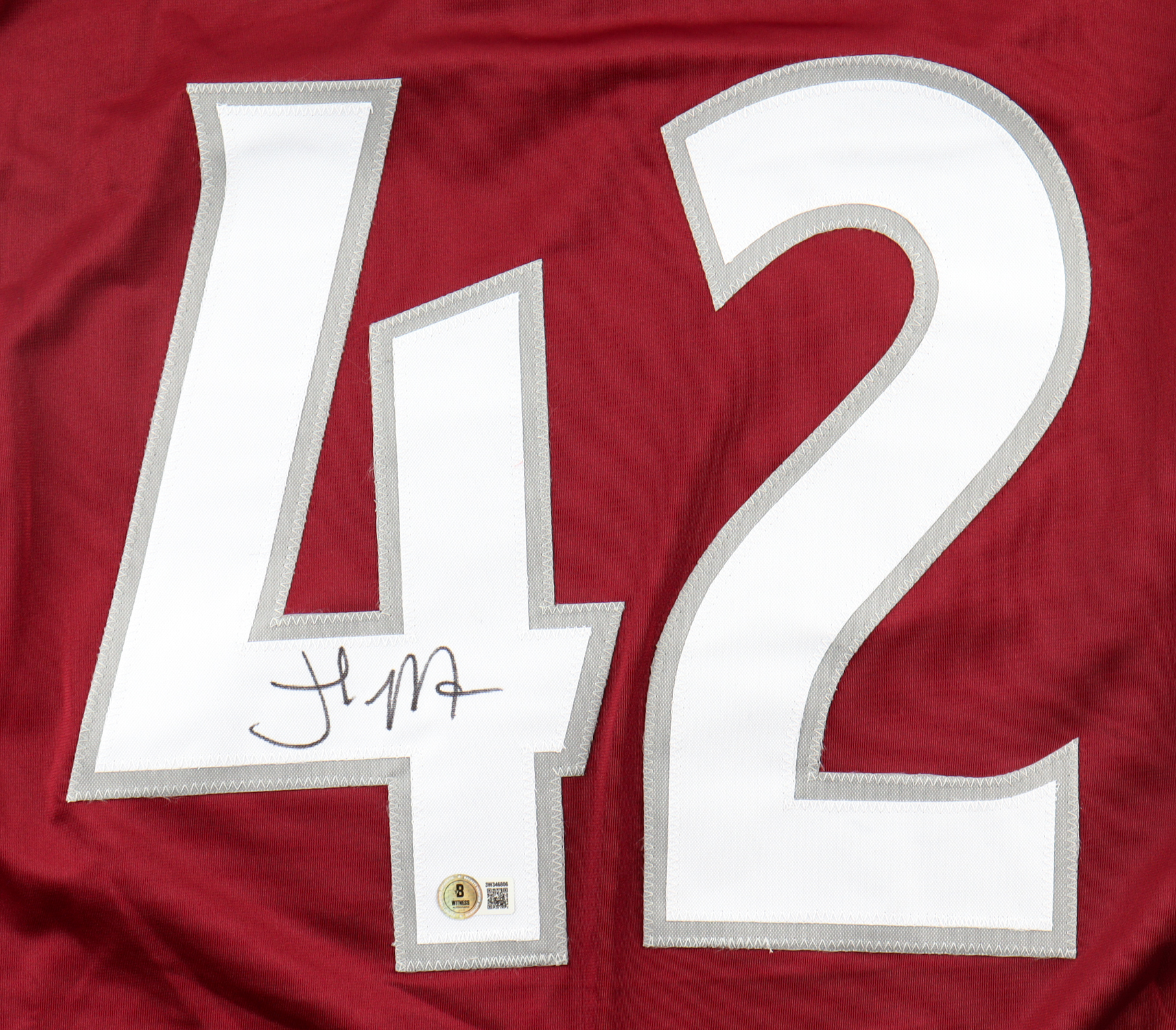 Custom jersey with everything sewn on, size XL. Hand-signed by Josh Manson.