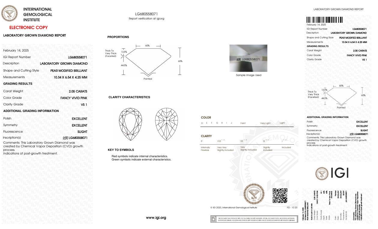 2.05 Carats Lab Grown PINK Diamond Loose VS1 | (IGI Cert)
