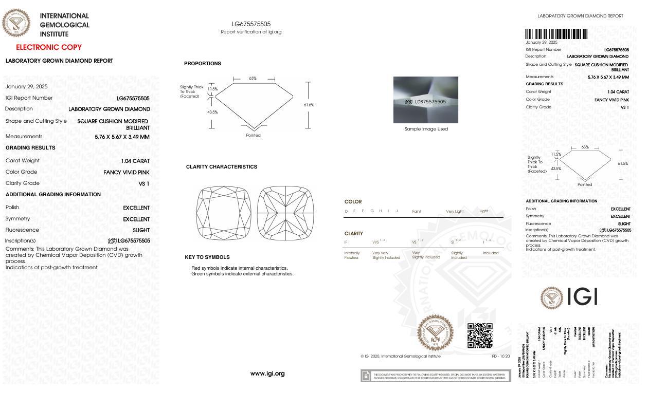 1.04 Carats Lab Grown PINK Diamond Loose VS1 | (IGI Cert)