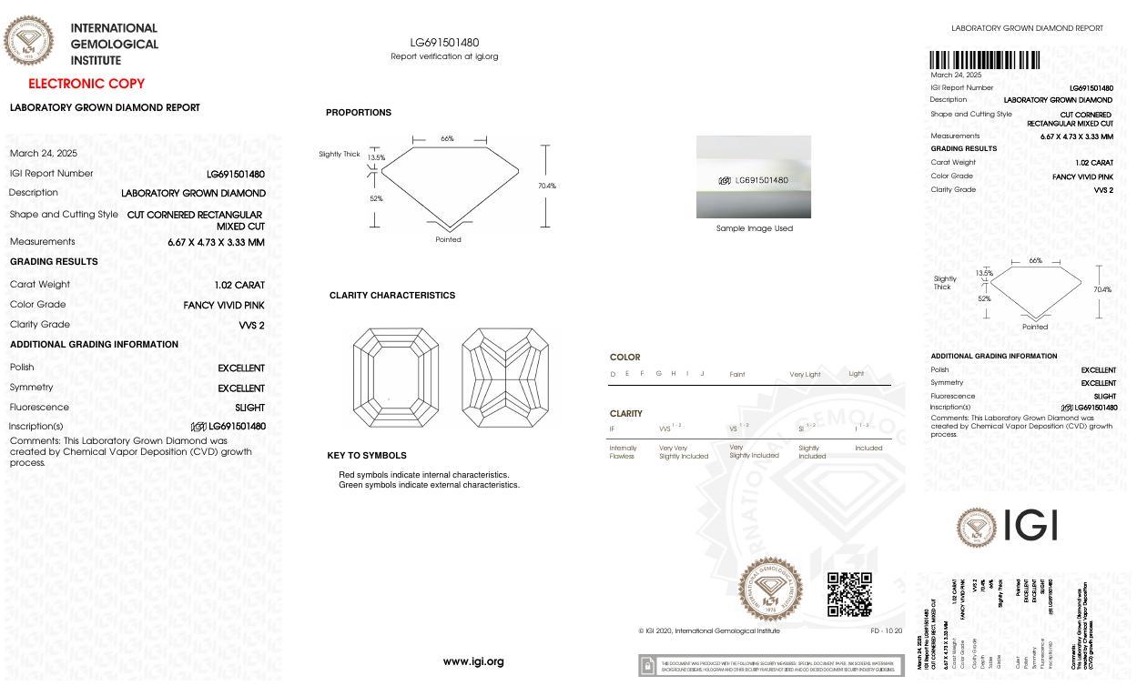 This piece includes paperwork from the International Gemological Institute (IGI).
