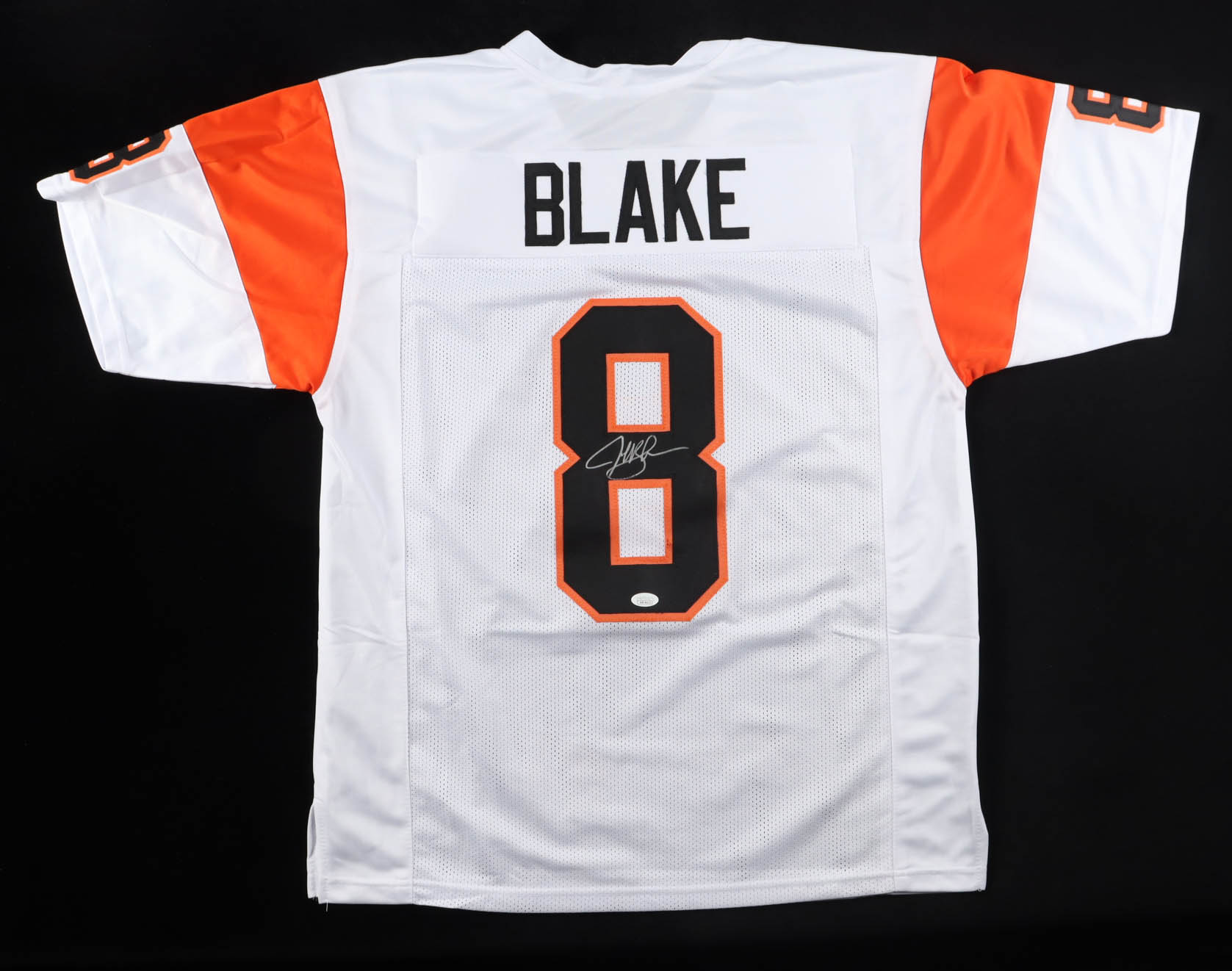 Custom jersey. Everything sewn on, size XL. Hand-signed by Jeff Blake.