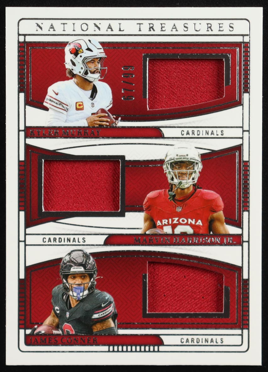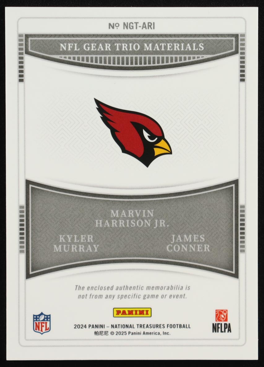 Kyler Murray / James Conner / Marvin Harrison Jr. 2024 Panini National Treasures NFL Gear Trio Materials #6 #67/99