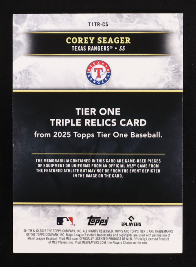 Corey Seager 2025 Topps Tier One Triple Relics #T1TRCS #20/49