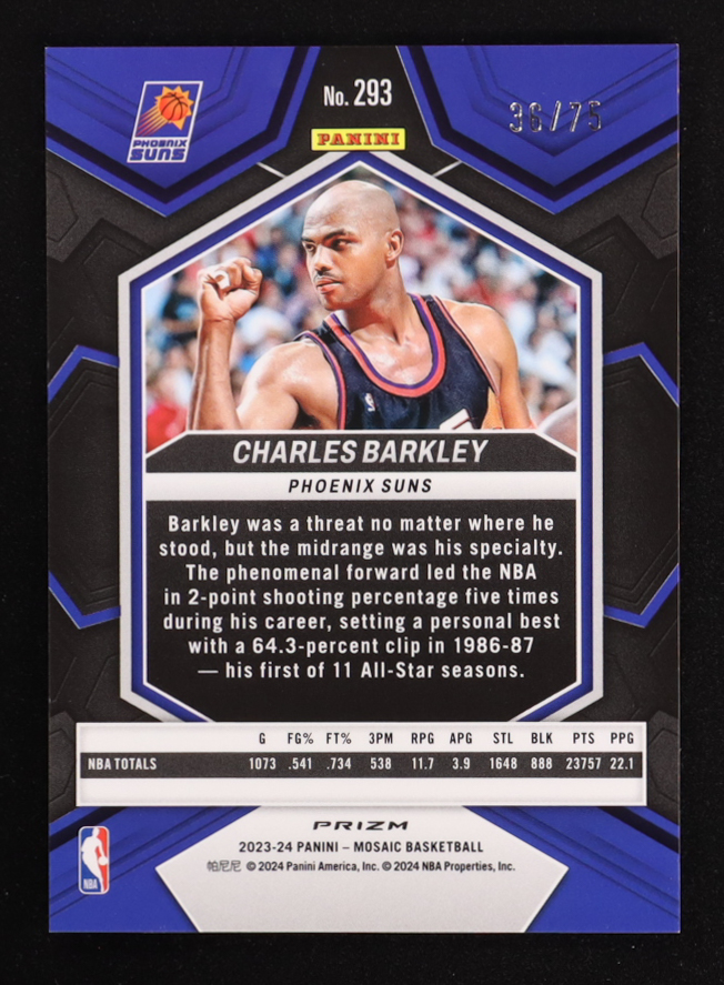 Charles Barkley 2023-24 Panini Mosaic Mosaic Choice Fusion Red and Yellow NBA Greats #293 #36/75