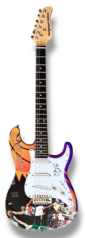 Custom Autograph Edition Stratocaster style electric guitar measures approximately 39" in length and has been hand-signed on the pickguard by Charles Barkley (Phoenix Suns, HOF).