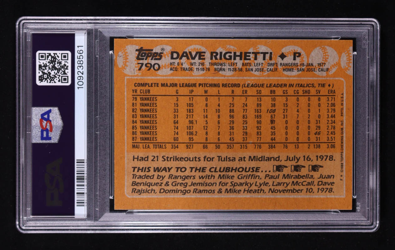 Dave Righetti 1988 Topps #790 (PSA 8)