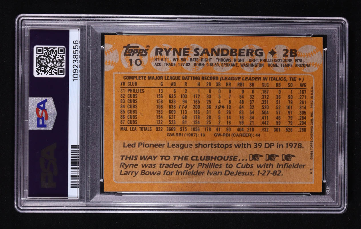 Ryne Sandberg 1988 Topps #10 (PSA 9) (ST)