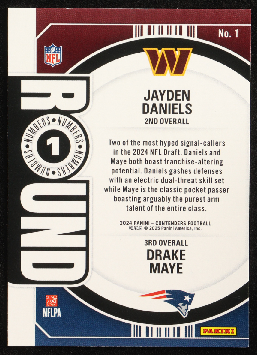 Drake Maye / Jayden Daniels 2024 Panini Contenders Round Numbers #1 RC