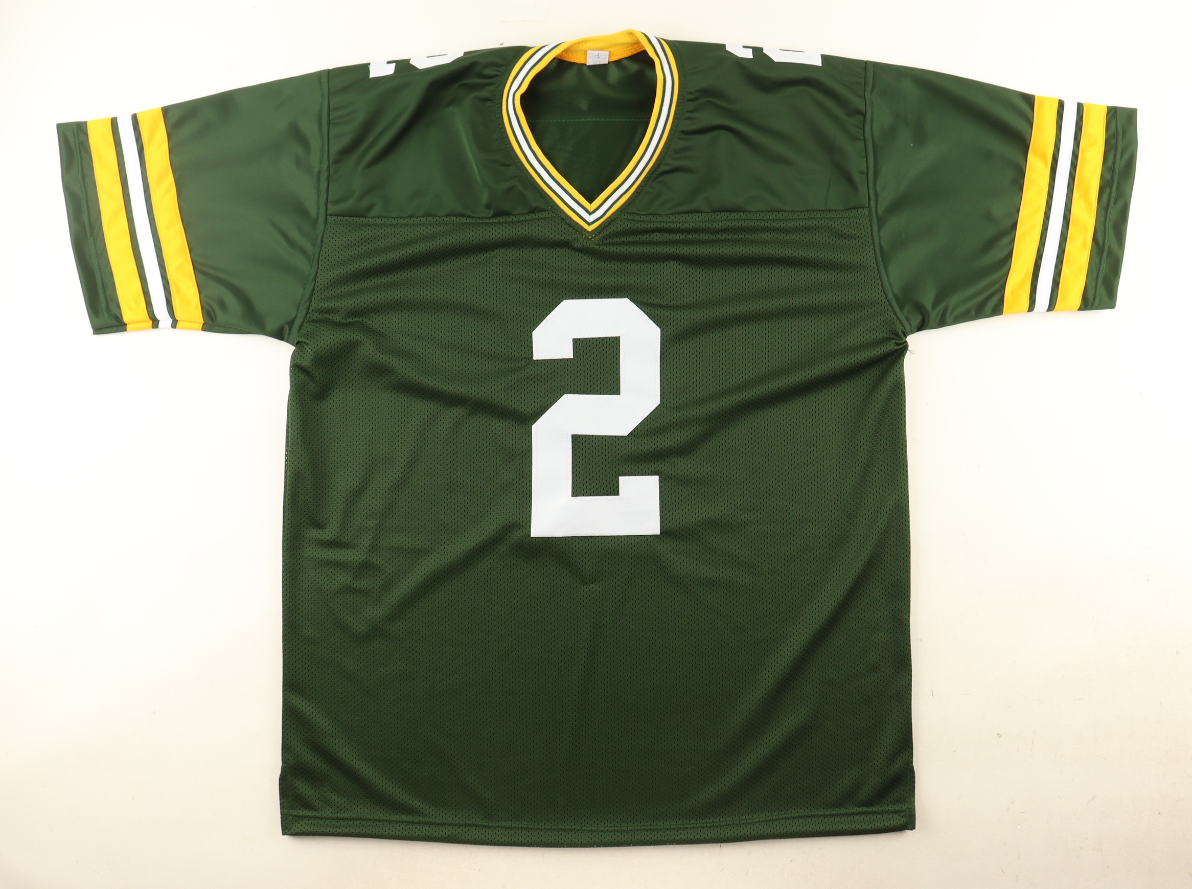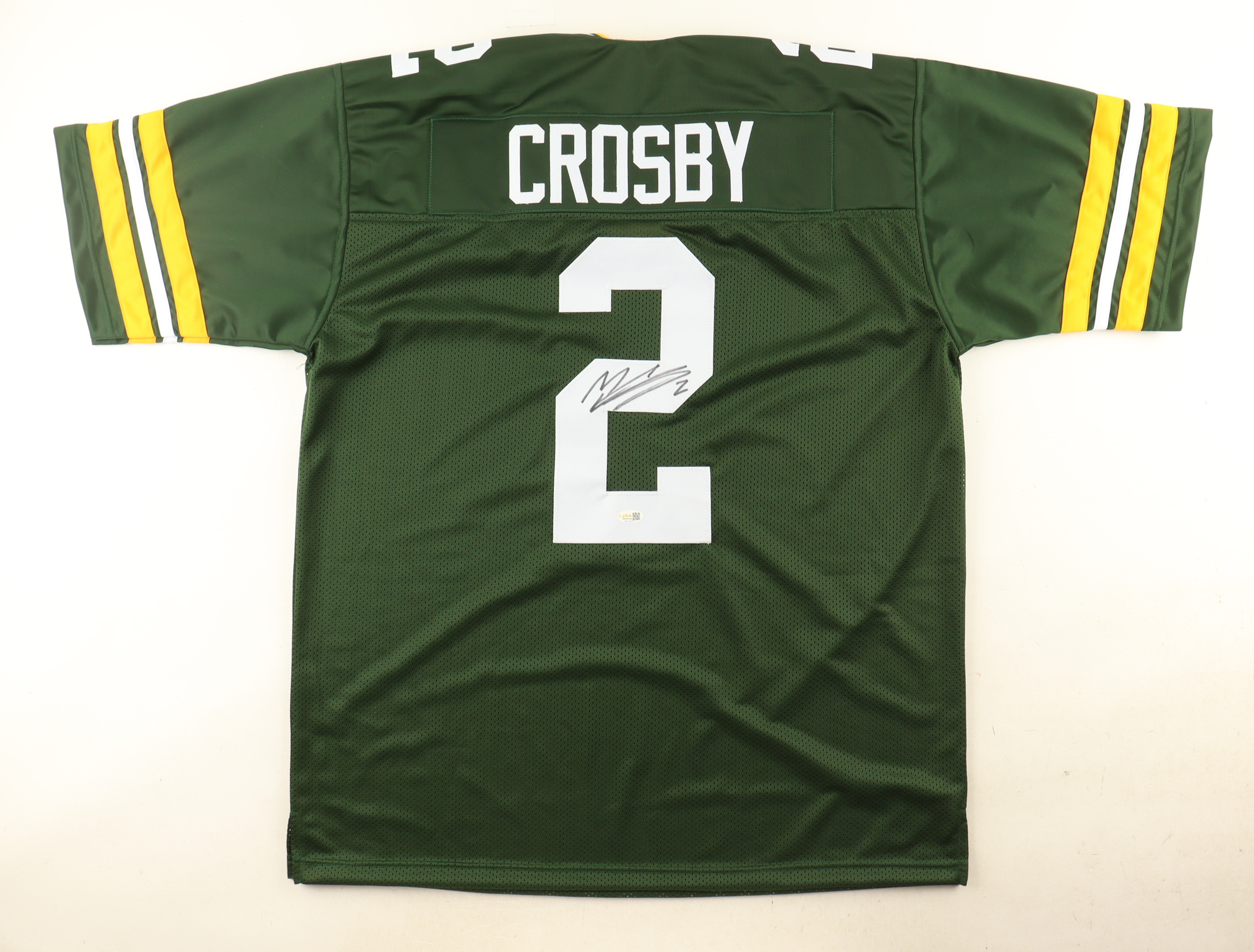 Custom jersey. Everything is sewn on, size XL. Has been hand-signed by Mason Crosby.