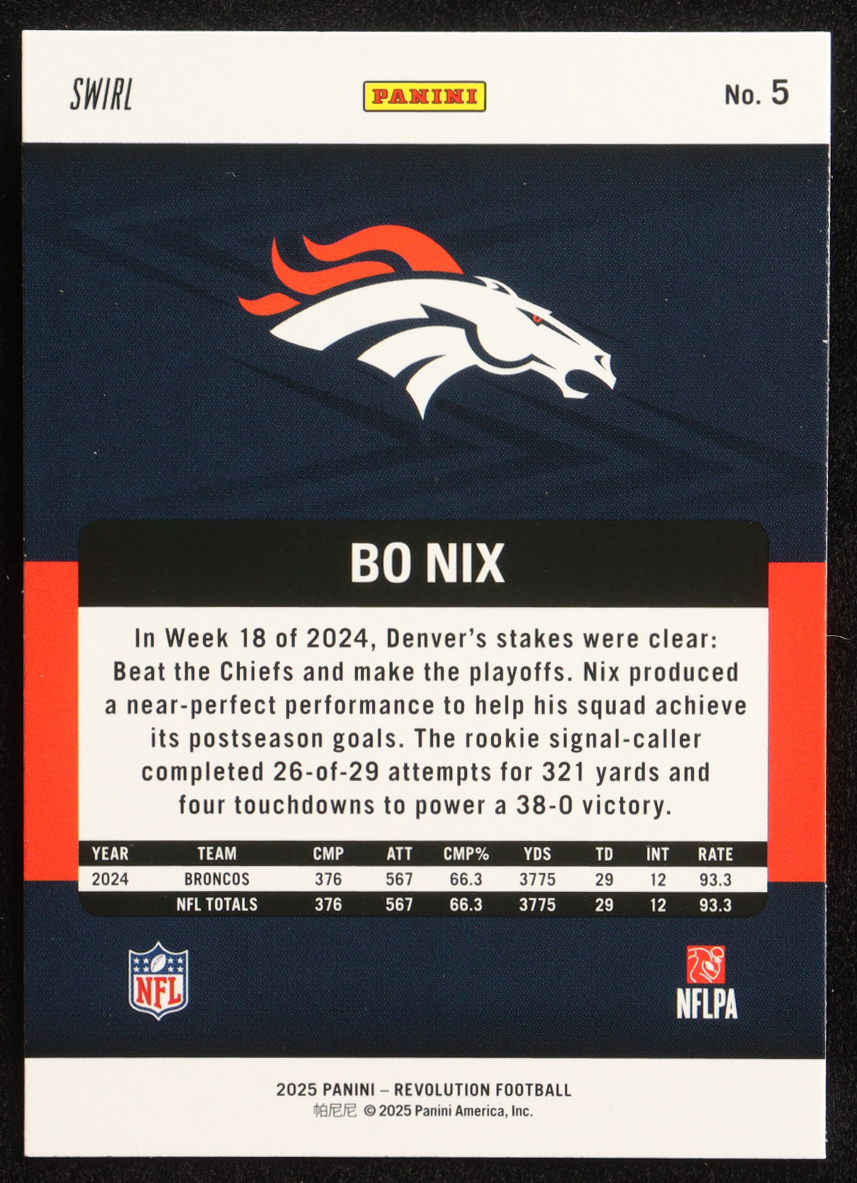 Bo Nix 2025 Panini Revolution Red Swirl #5