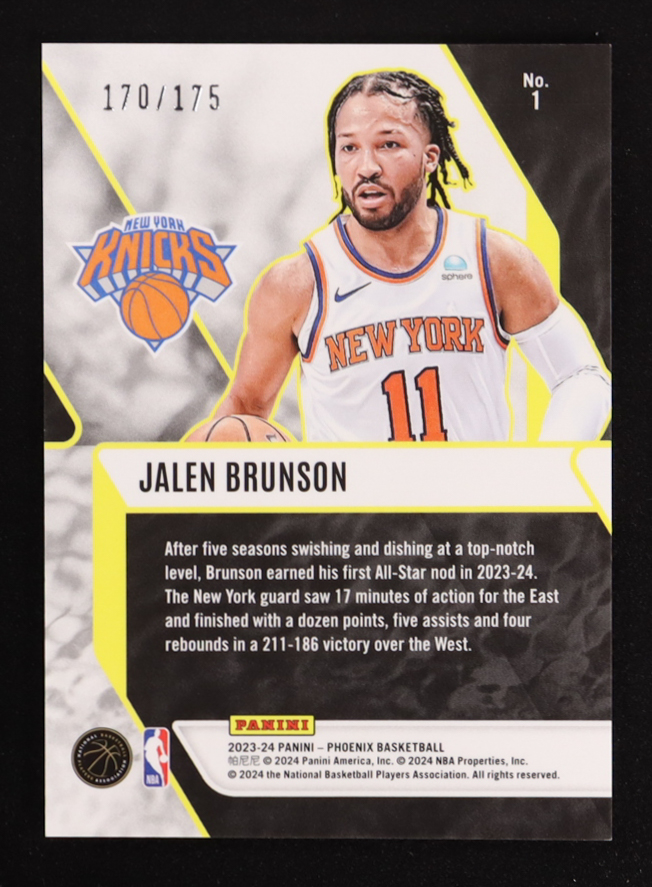 Jalen Brunson 2023-24 Panini Phoenix Fade To Black Phoenix Yellow Ice #1 #170/175