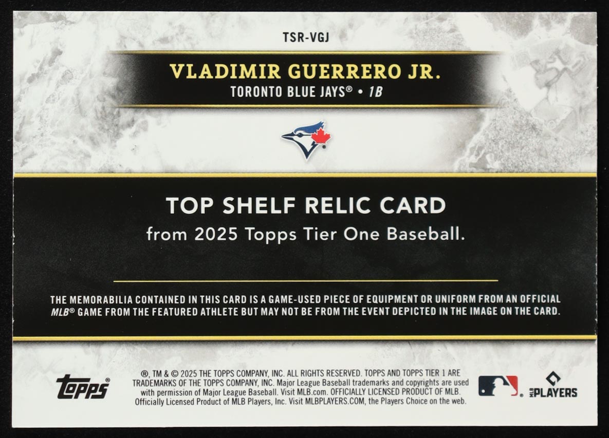 Vladimir Guerrero Jr. 2025 Topps Tier One Top Shelf Relics #TSRVGJ #39/49