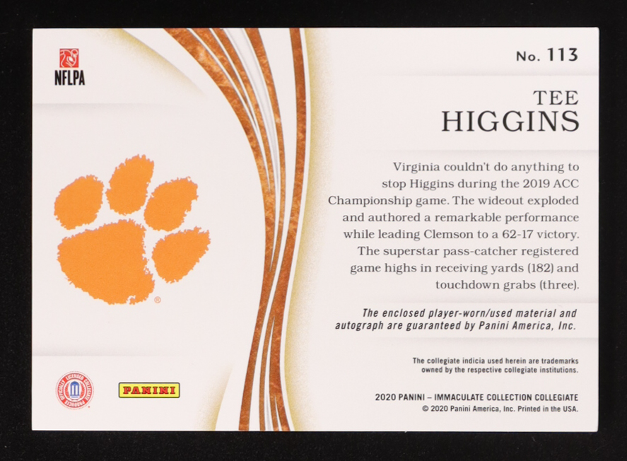 Tee Higgins 2020 Immaculate Collection Collegiate Rookie Patch Autographs Gold #113 #01/25 RC