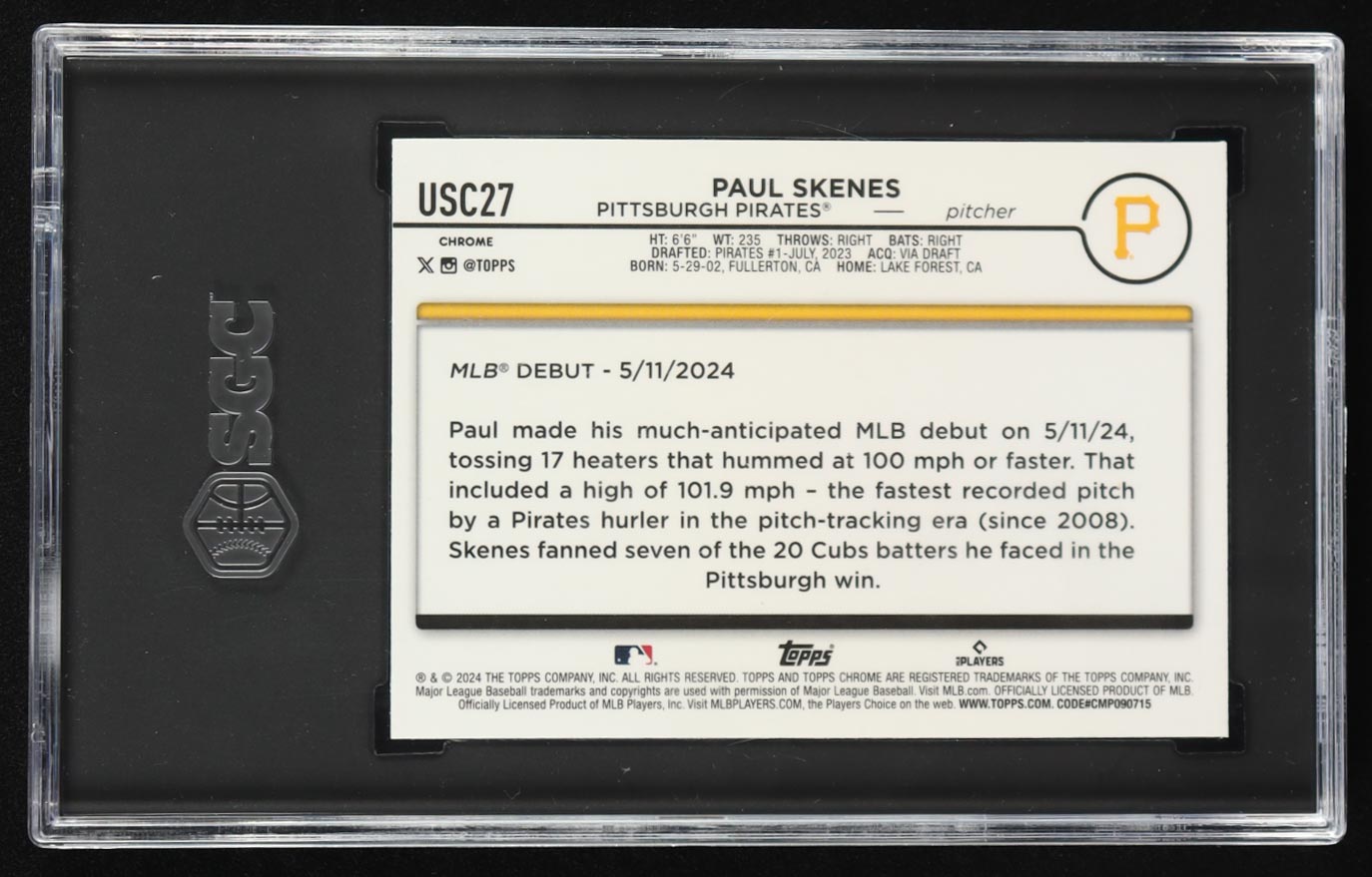 Paul Skenes 2024 Topps Chrome Update Raywave Refractor #USC27 RC (SGC 9)