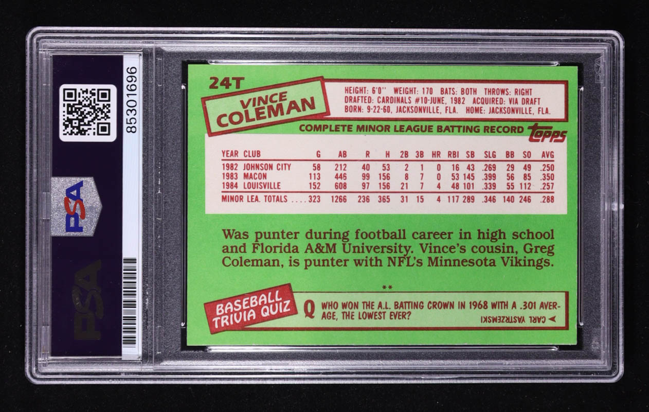 Vince Coleman Signed 1985 Topps Traded #24T RC (PSA Encapsulated)