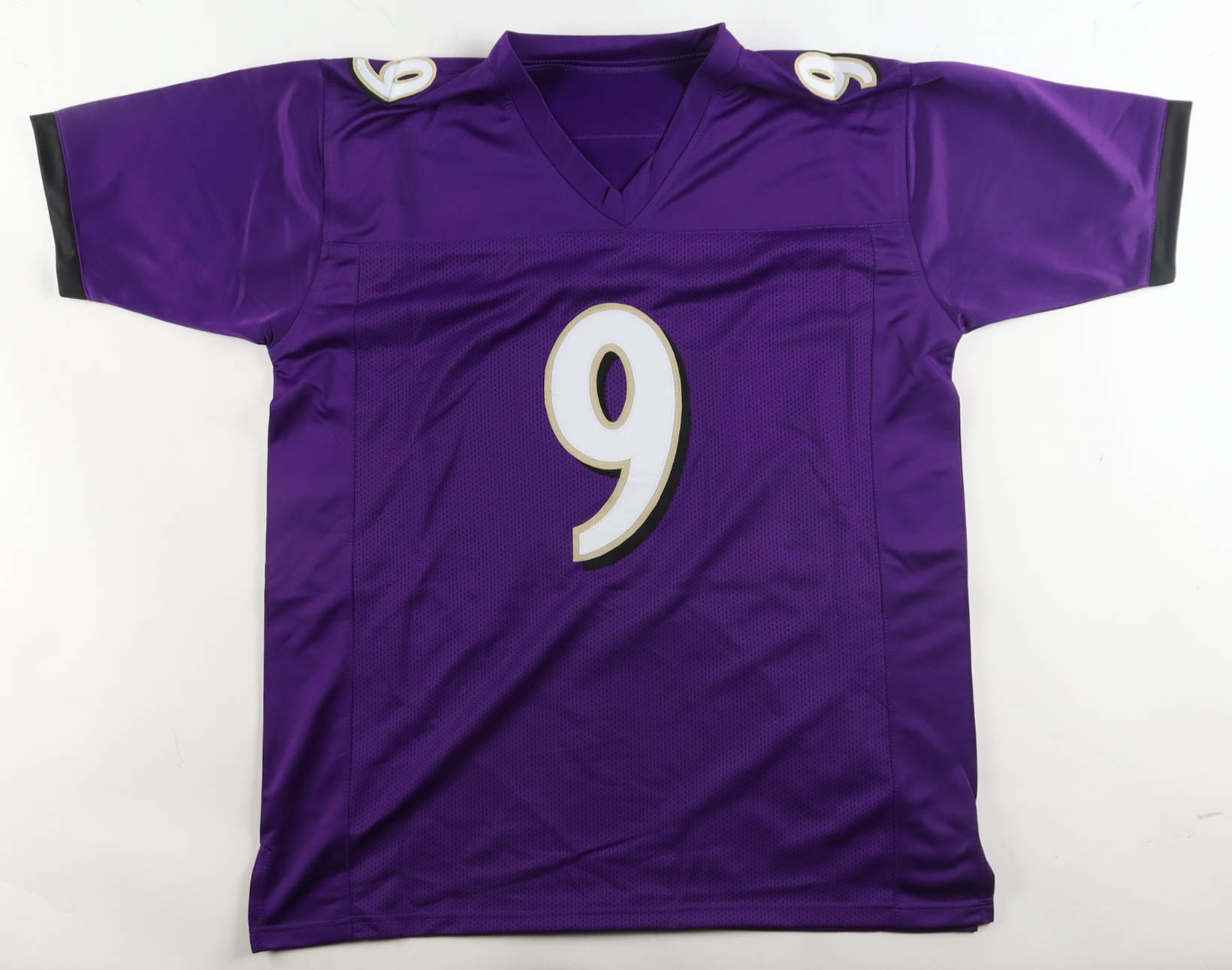 Custom jersey with everything sewn on, size XL. Hand-signed by Justin Tucker.