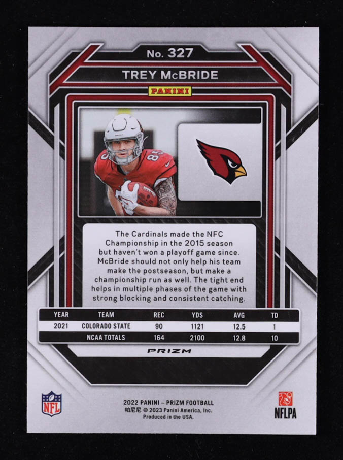 Trey McBride 2022 Panini Prizm Prizms No Huddle #327 RC