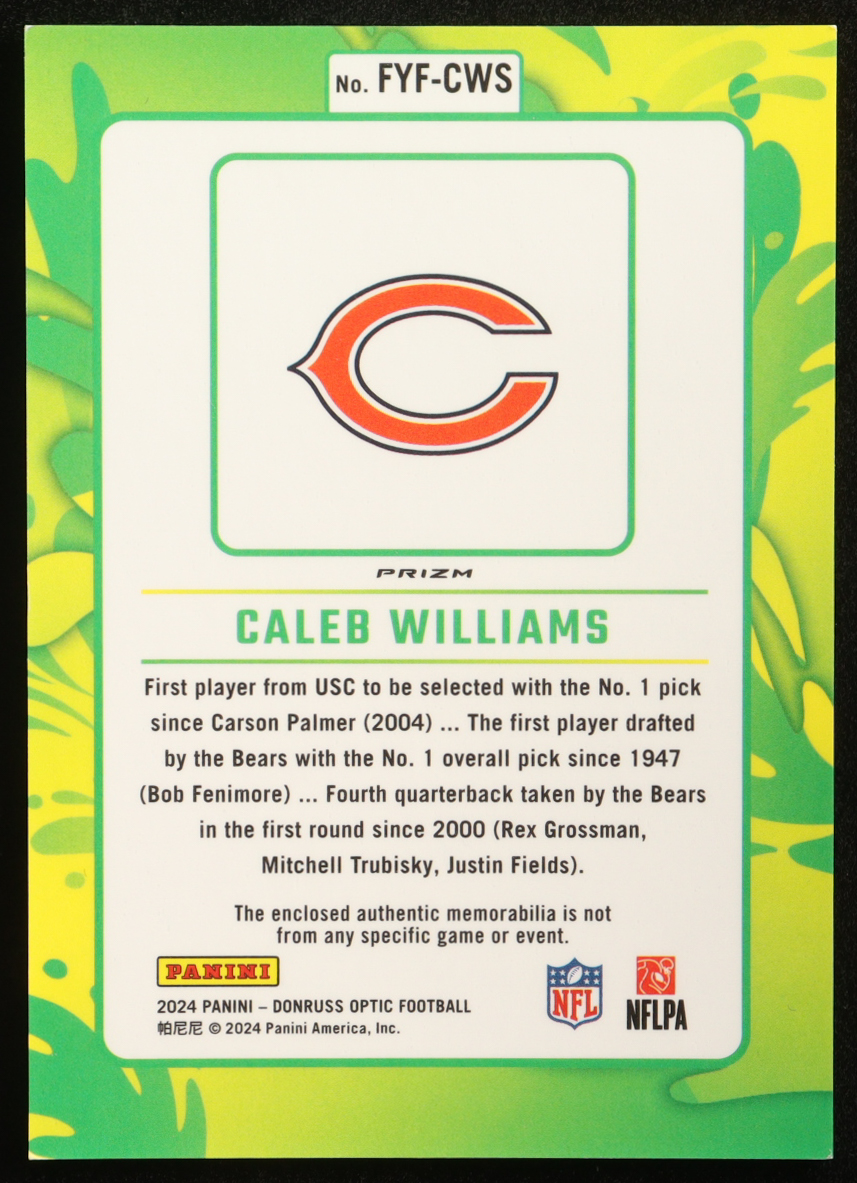 Caleb Williams 2024 Donruss Optic First Year Fresh Jerseys Blue Hyper #1 RC