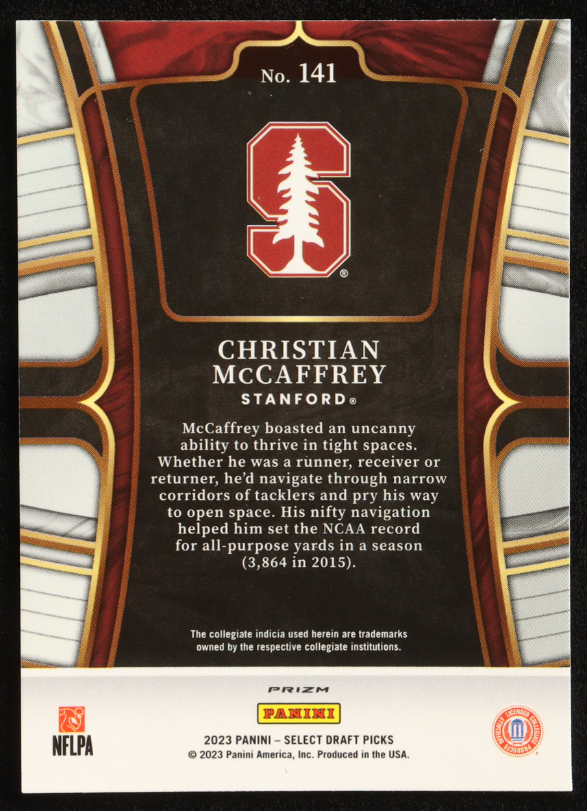 Christian McCaffrey 2023 Select Draft Picks Prizms Red Lazer #141 RC