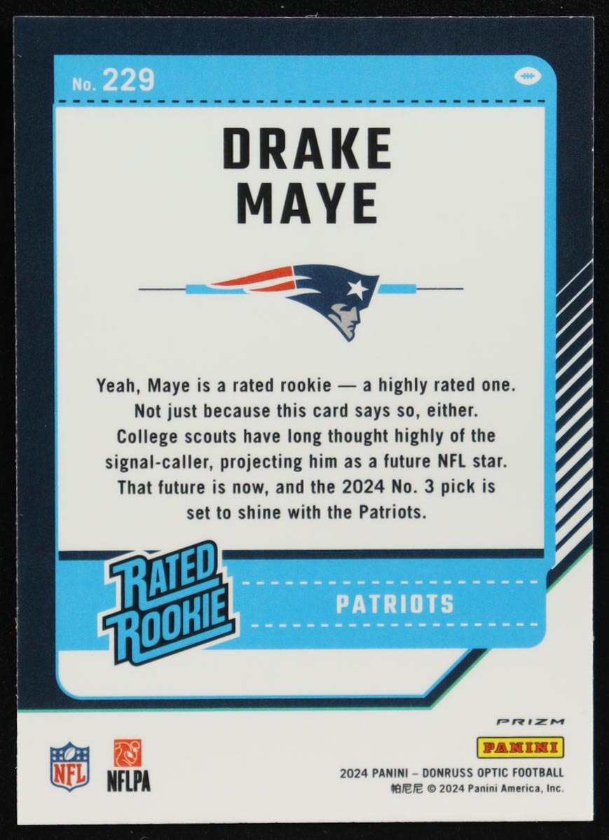 Drake Maye 2024 Donruss Optic Pink #229 RR RC