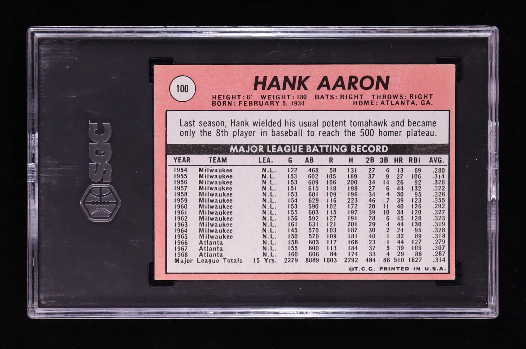 Hank Aaron 1969 Topps #100 (SGC 4.5)