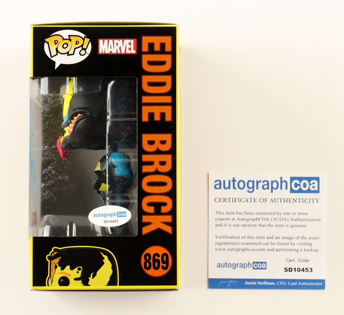 Tom Hardy Signed "Marvel" #869 Eddie Brock Funko Pop Vinyl Figure (ACOA)