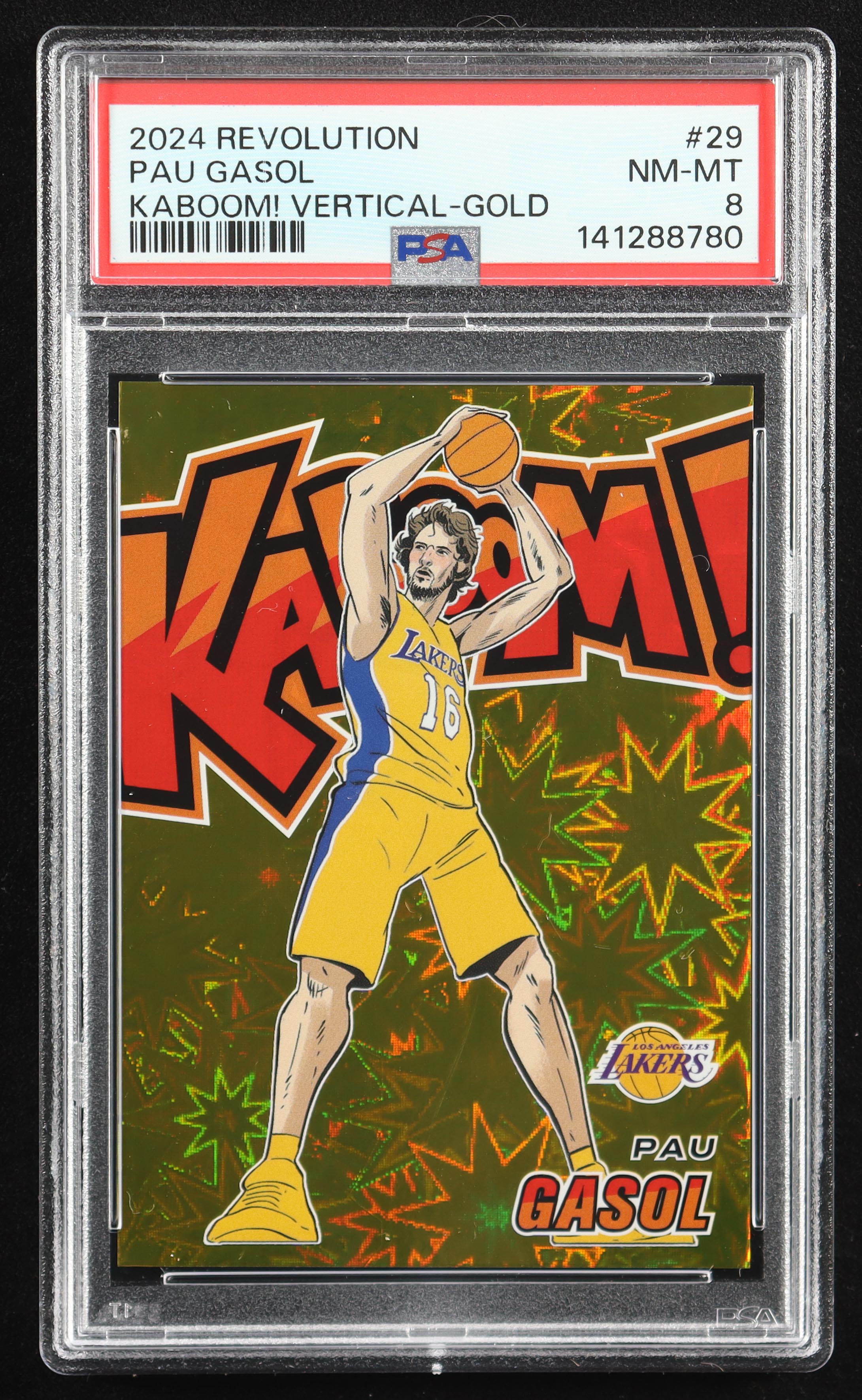 Pau Gasol 2024-25 Panini Revolution Kaboom Vertical Gold #29 #01/10 (PSA 8)