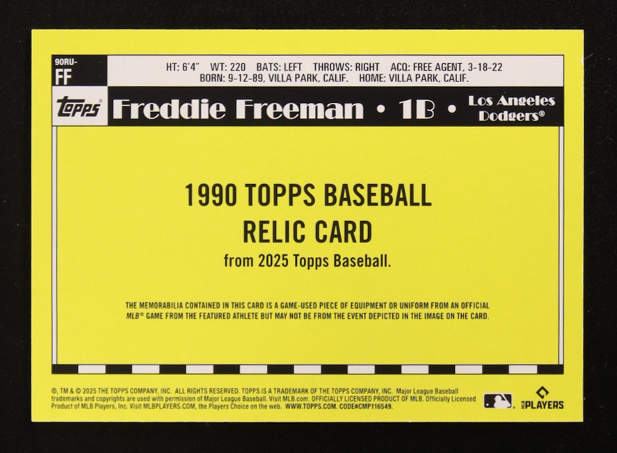 Freddie Freeman 2025 Topps Update '90 Topps Relics #90RUFF