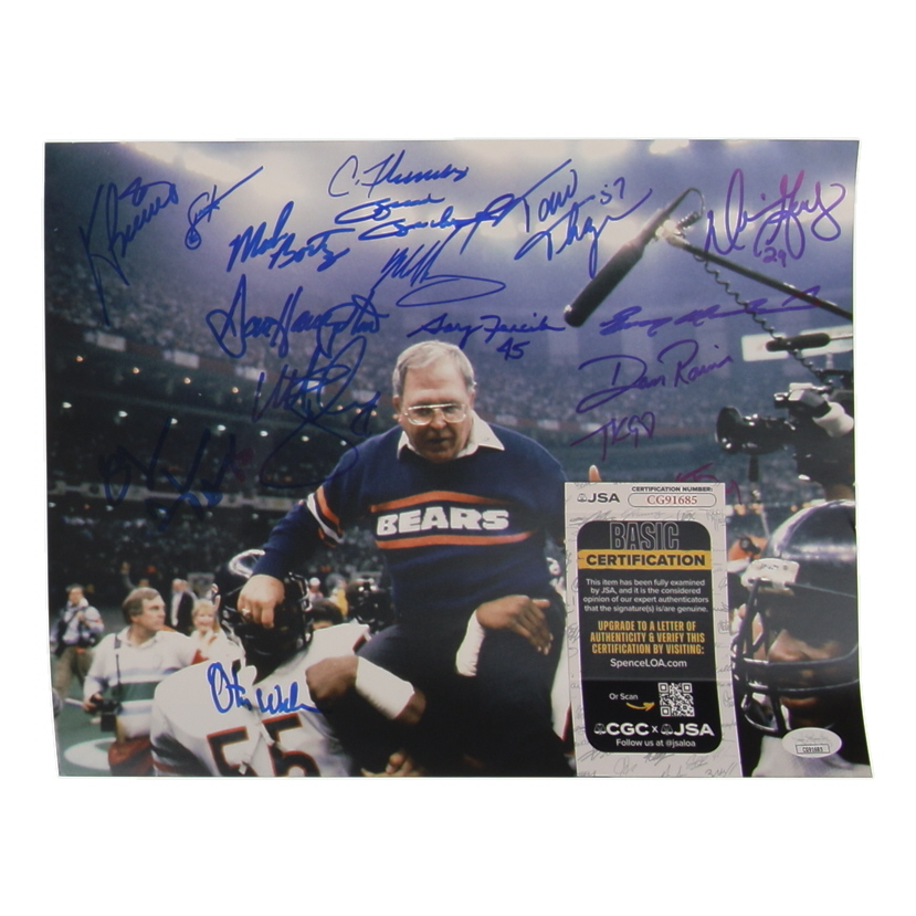 1985 Chicago Bears Super Bowl Champs 11x14 Photo Team-Signed by (17) with Dan Hampton, Mike Singletary, Tom Thayer, & Otis Wilson (JSA)