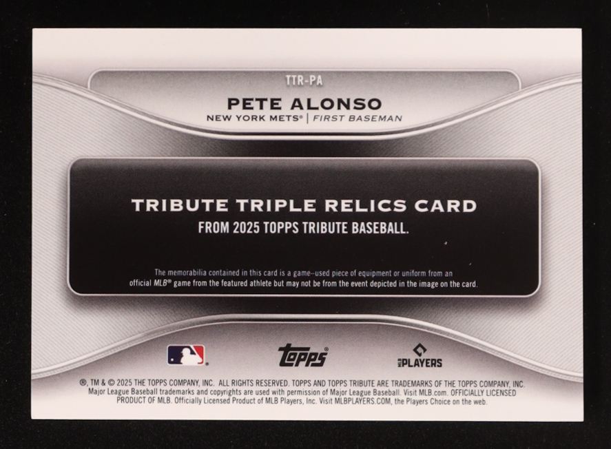 Pete Alonso 2025 Topps Tribute Triple Relics #TTRPA #190/199