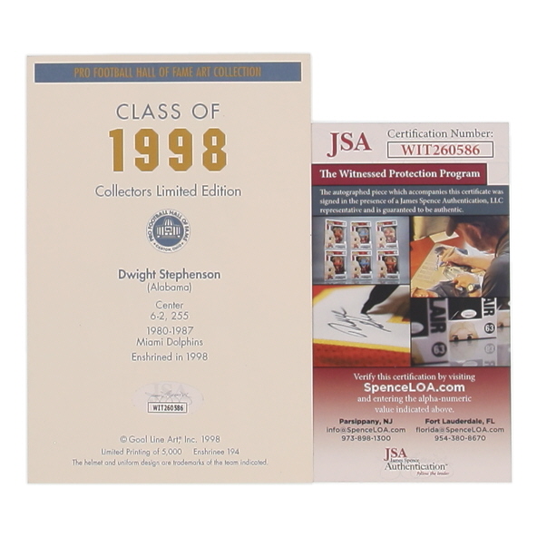 Dwight Stephenson Signed LE Goal Line Art Hall of Fame Postcard Inscribed "HOF 98" (JSA)