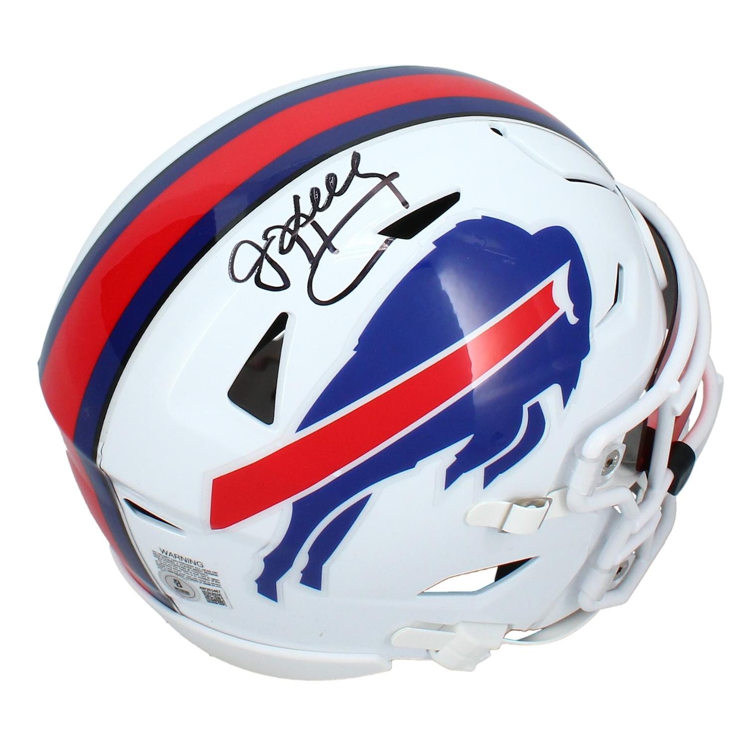 Riddell Buffalo Bills mid-size speedflex helmet has been hand-signed by Jim Kelly (HOF).