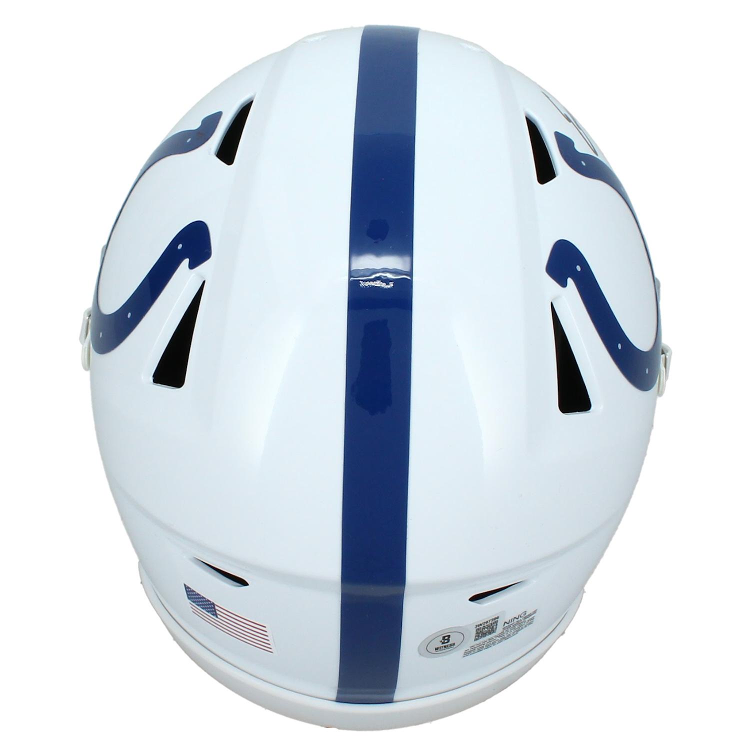 Riddell Indianapolis Colts mid-size speedflex helmet has been hand-signed by Edgerrin James.