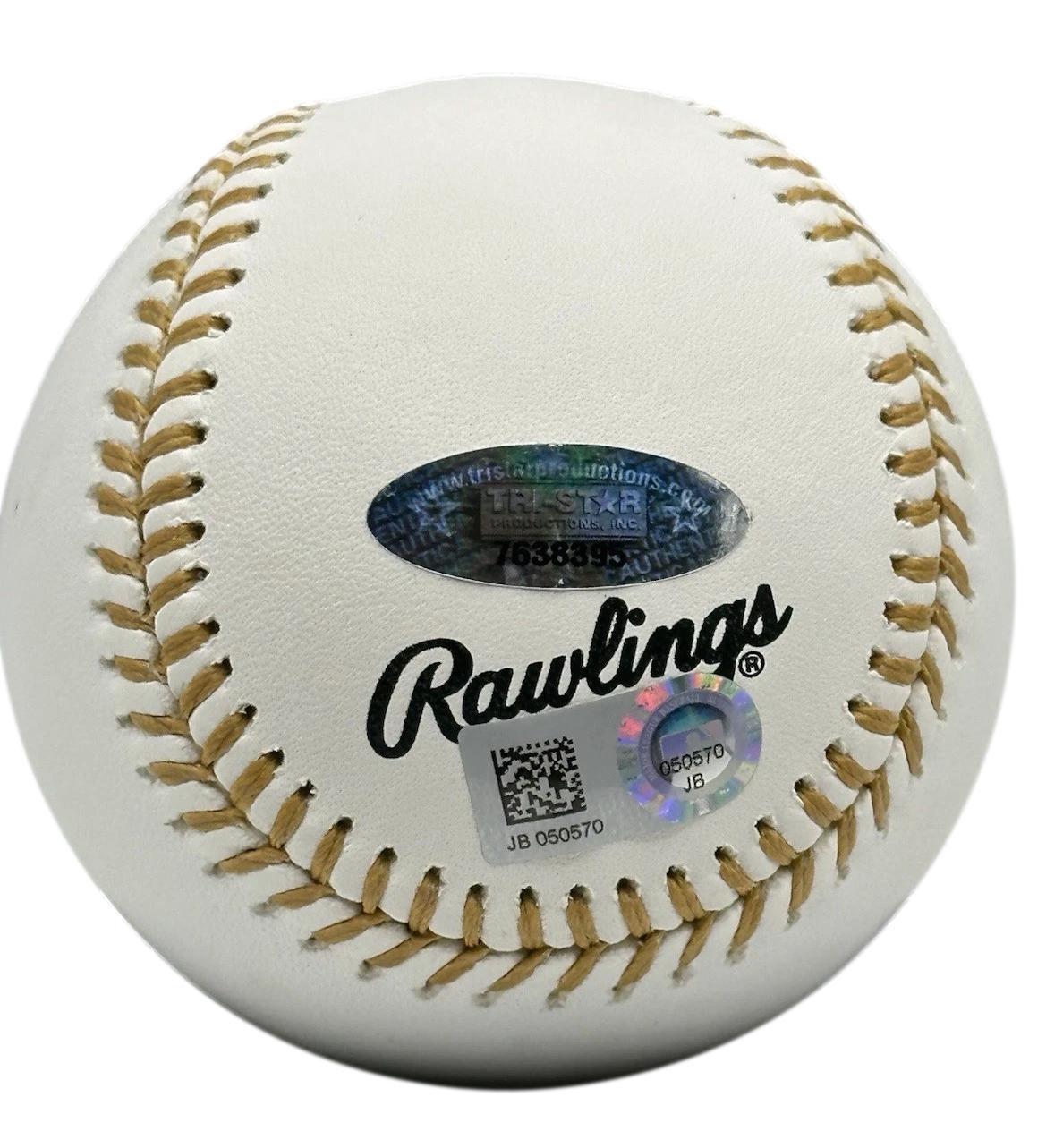 The baseball includes an official MLB Authentication hologram as well as a TriStar hologram for authenticity purposes.