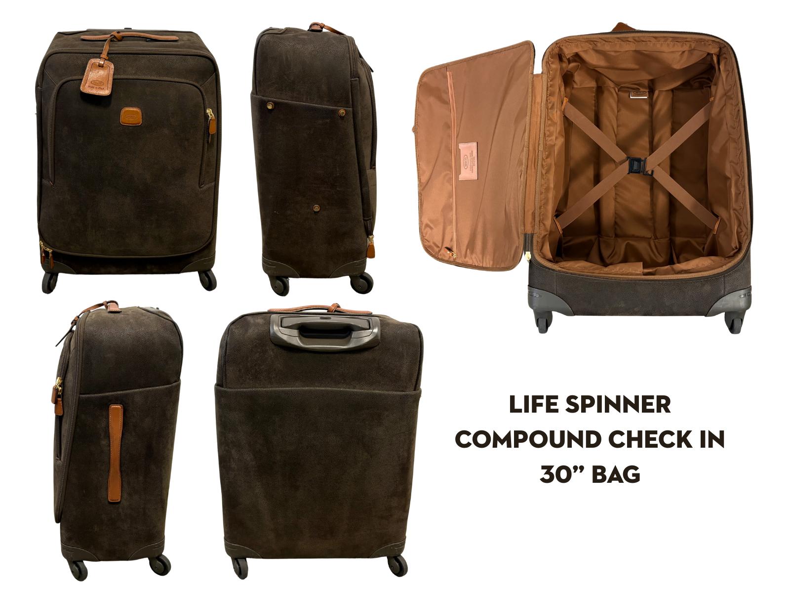 All three bags have a water-resistant, suede-like exterior, Tuscan leather details, and retractable handles. The two Life Spinner Compound bags have four 360 ° double-ball-bearing swiveling wheels, ensuring effortless mobility.